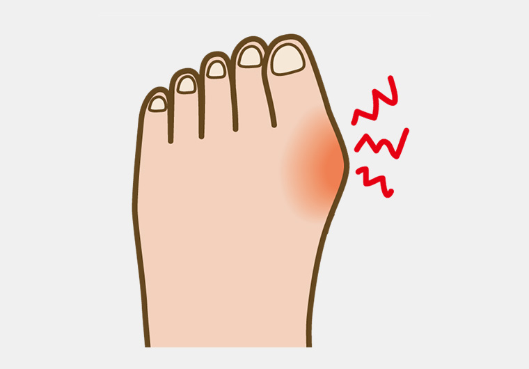 足首にある距骨が内側に傾くことで重心が親指側に移動し、親指の付け根などに必要以上の負荷がかかることで外反母趾を引き起こします。