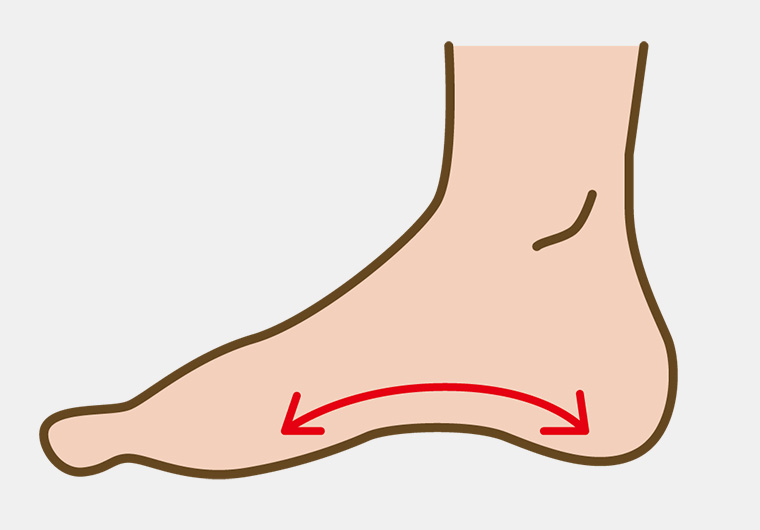 運動不足や加齢により足の筋力が低下し、アーチが下がることで歩行時の衝撃を吸収しづらくなり不自然な歩き方を引き起こします。